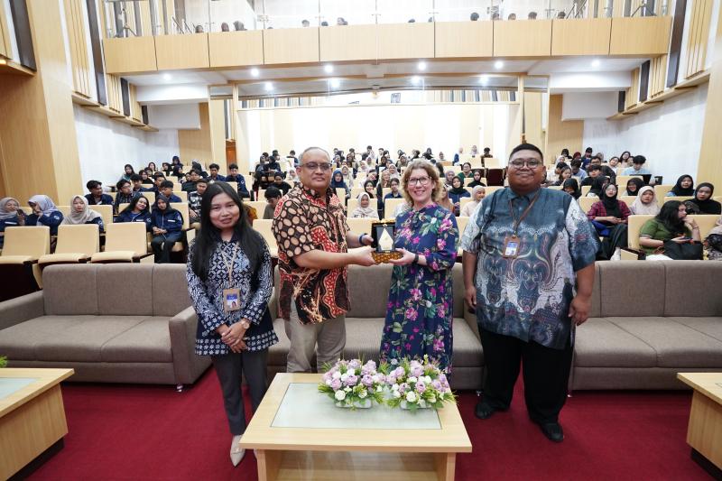 Sesi tanya jawab berlangsung dengan sangat interaktif. Mahasiswa FEB UNY mengajukan berbagai pertanyaan seputar prospek karier internasional, strategi manajemen risiko global, hingga peluang studi lanjut di luar negeri. Antusiasme ini menunjukkan besarnya ketertarikan mahasiswa untuk memperluas pemahaman mereka mengenai isu-isu bisnis internasional dan peran mereka dalam ekosistem ekonomi global yang terus berubah.