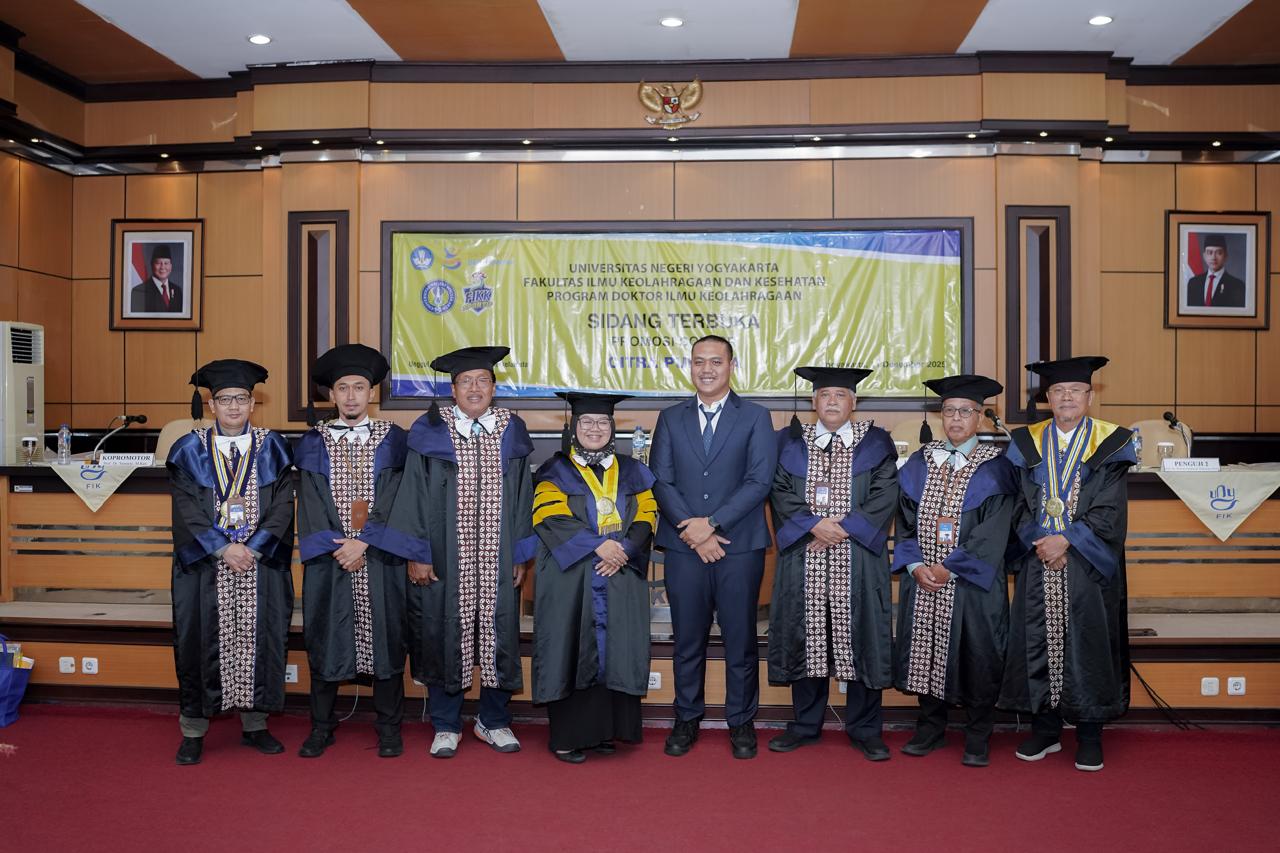 The dissertation, entitled “An Evaluation Study of Sports Facilities and Infrastructure Management as an Income-Generating Instrument of the Faculty of Vocational Studies at Universitas Negeri Yogyakarta,” examines the strategic management of sports facilities as sustainable revenue-generating assets within a PTN-BH (Legal Entity State University) framework.